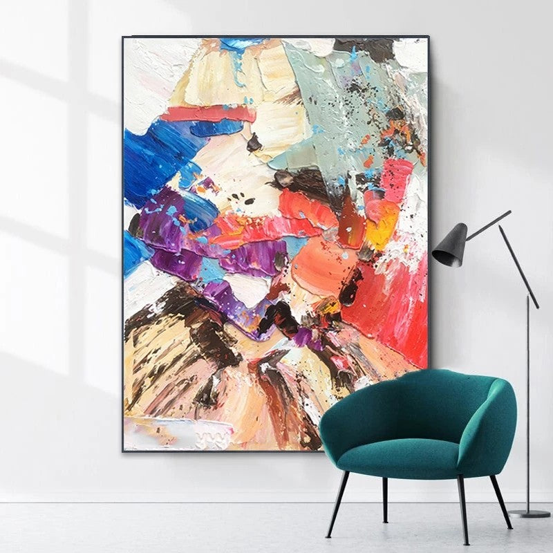 A vibrant and energetic hand-painted abstract painting, featuring a joyful explosion of bold colours and dynamic textures that bring a powerful artistic statement to any room.