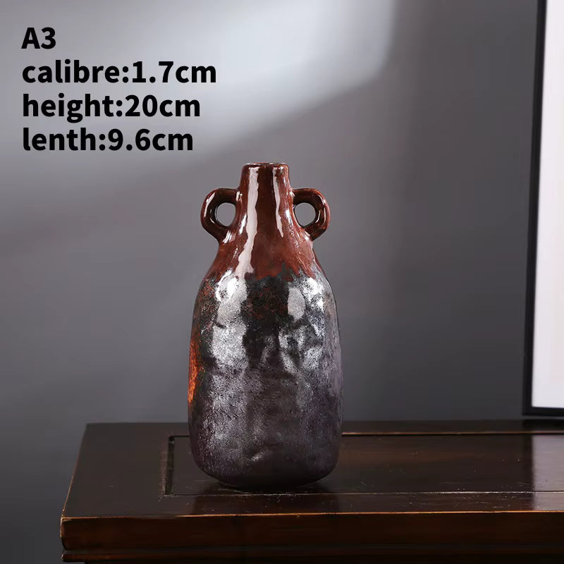 Embrace the artistry of the New Chinese Style with our Glazed Kiln Turned Ceramic Vase Collection. Each piece features a unique drip glaze effect in rich blue tones over a warm, earthy base. Perfect for showcasing flower arrangements or dried flowers as a striking home decor accent in your living room.