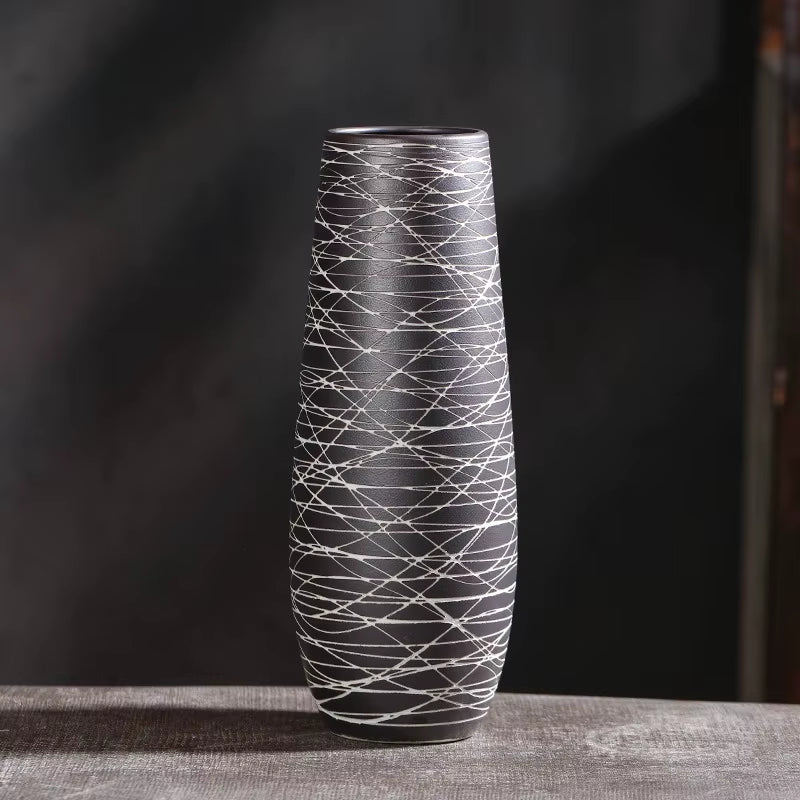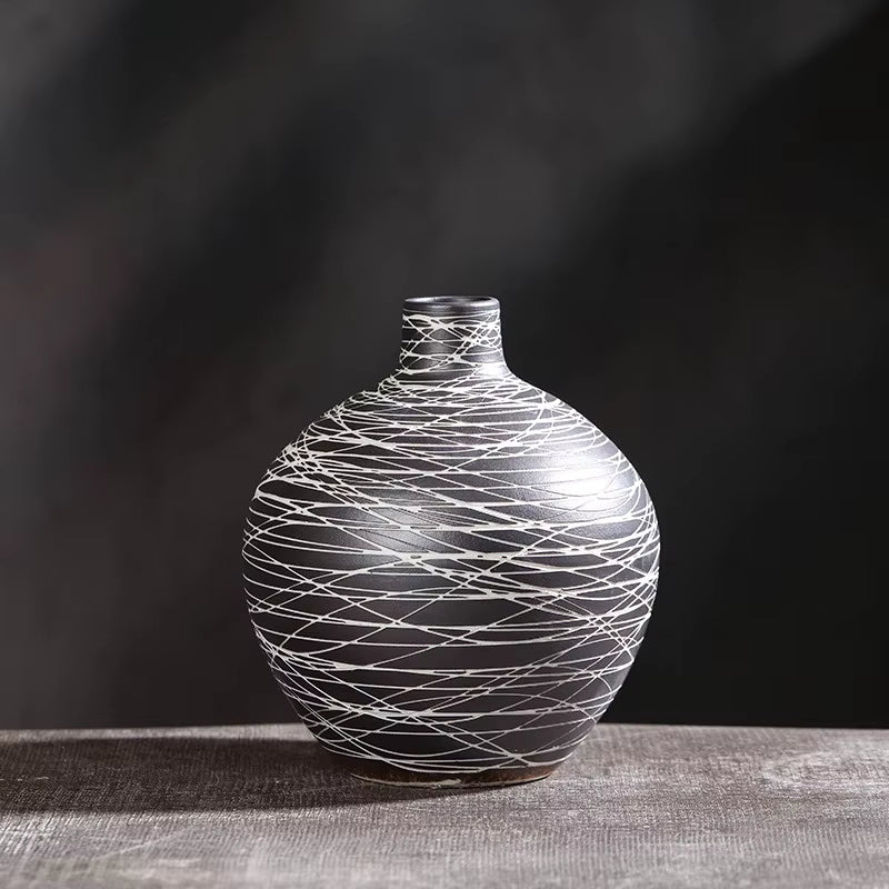 Inspired by simple retro and Art Deco design, this Jingdezhen Ceramic Vase Set is a beautiful addition to your modern home. Each tabletop ornament features a unique, intricate spiral pattern, perfect for a desktop or living room flower arrangement. These versatile vases also make elegant decorations for a modern wedding.